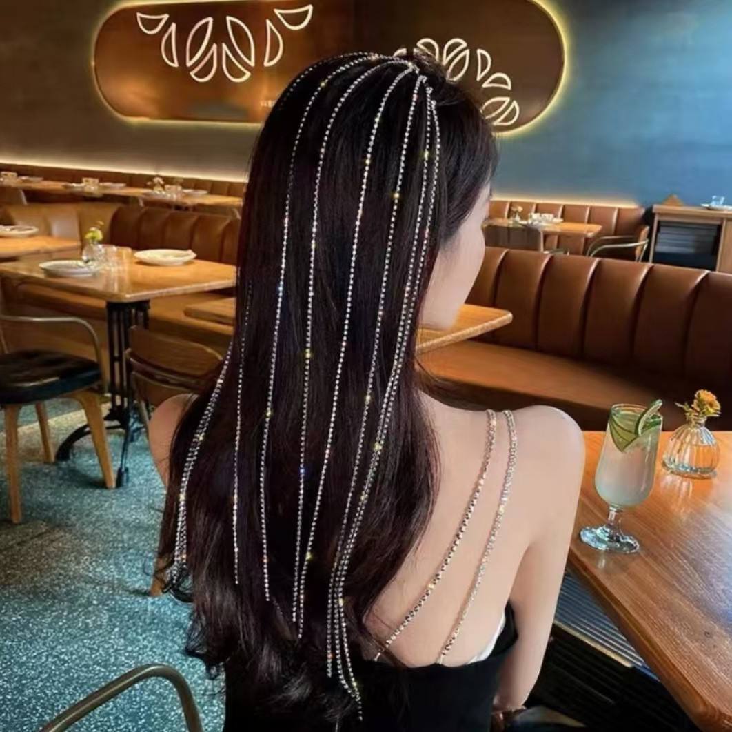 Luxury Flash Sequin Hair Chain Clip for Girls Fashionable Wedding Hair Accessory with Tassel Hair Clip